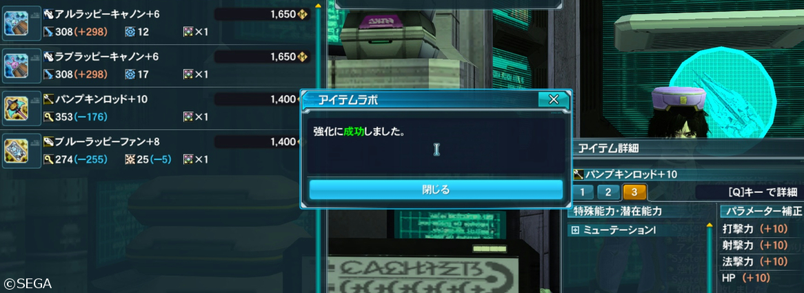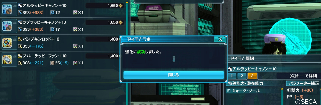 最後にアルラッピーキャノン。なかなか+10にならなくて嫌がらせかと。