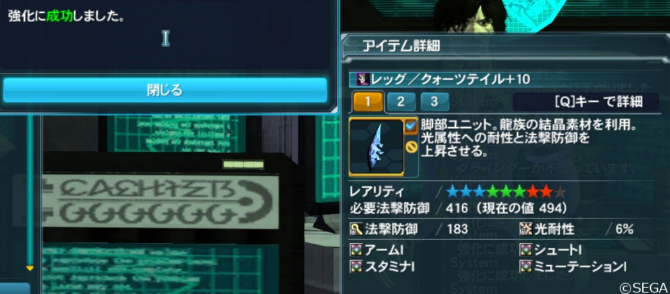 リアは出なかったんですがレッグ2つ出たのでいい方を強化して装備。