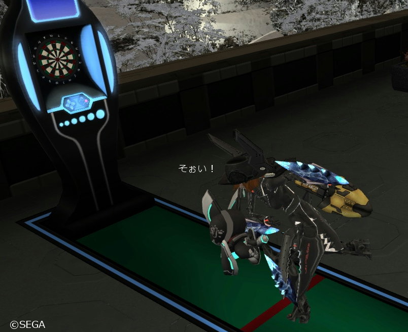 「ボール」のロビアク(男性モーション)使って全力でダーツ投げ。